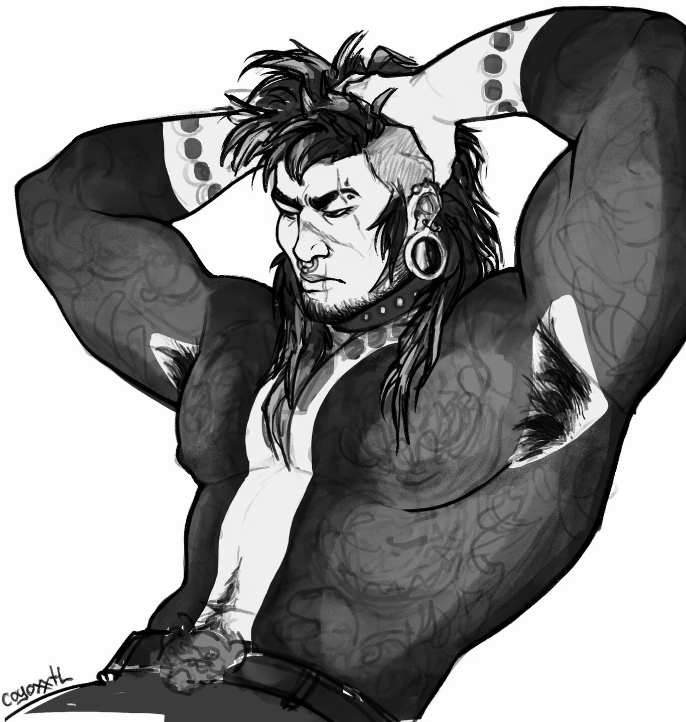 My favorite things to draw are OCs, OCxCanon, NSFW, reference pages, thick babes and beefcakes, tattoos, and the occasional abstract psychedelic nonsense. I love line work, detail, and I'm biased to working in black and white. I’m experimental and open to attempt almost anything, shoot your shot I dare you.